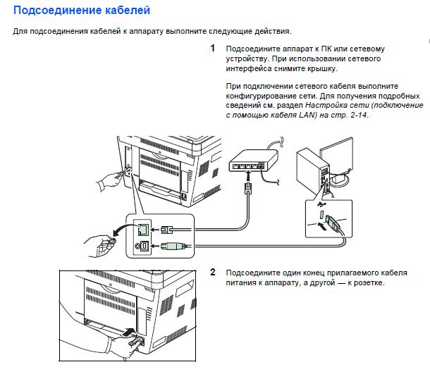 Ознакомьтесь с порядком установки аппарата в Руководстве пользователя. Прежде чем начать установку программного обеспечения с диска Product Library, проверьте, что аппарат включен в сеть и подключен к компьютеру. Варианты подключения: