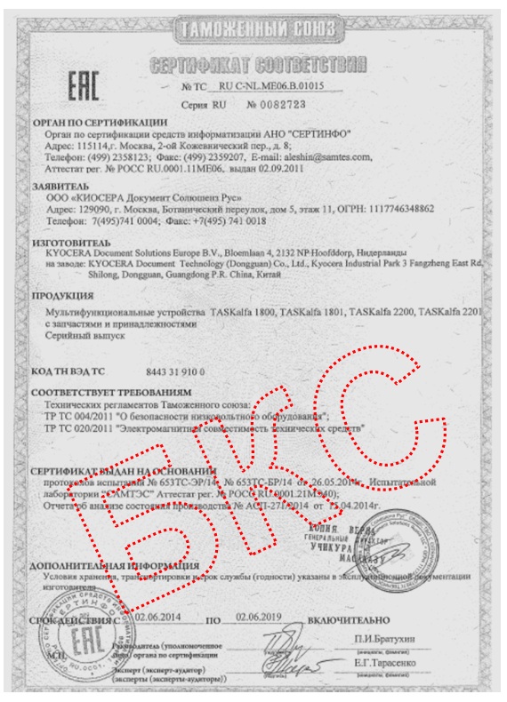 Изготовитель: KYOCERA MITA CORP. Япония, 1-2-28 Tamatsukuri, Chuo-ku, Osaka 540-8585